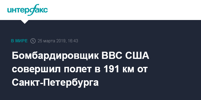 Бомбардировщик ВВС США совершил полет в 191 км от Санкт-Петербурга