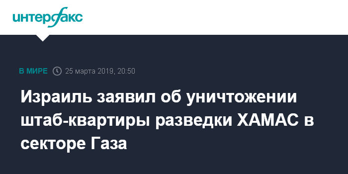 Израиль заявил об уничтожении штаб-квартиры разведки ХАМАС в секторе Газа