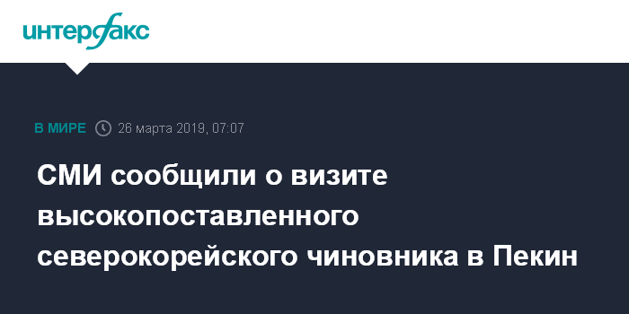 Москва. 26 марта. INTERFAX.RU - Некий высокопоставленный северокорейский чиновник прибыл из Пхеньяна в Пекин, сообщает "Ренхап".