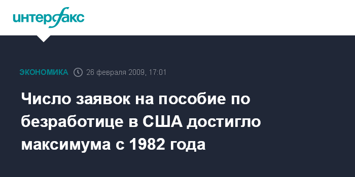 Вашингтон. 26 февраля. INTERFAX.RU - Число американцев, впервые обратившихся за пособием по безработице, на прошлой неделе неожиданно увеличилось на 36 тыс. - до 667 тыс., что является максимальным показателем с 1982 г., сообщило агентство Bloomberg со ссылкой на данные министерства труда.