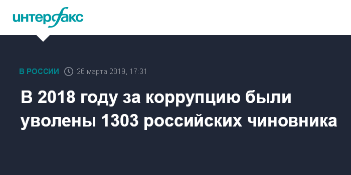 В 2018 году за коррупцию были уволены 1303 российских чиновника