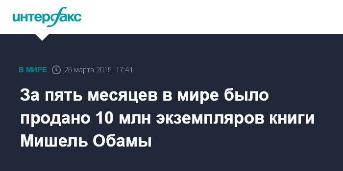 Москва. 26 марта. INTERFAX.RU - Мемуары бывшей первой леди США Мишель Обамы под названием "Становление" (Becoming) могут стать самой популярной автобиографией в истории издательского бизнеса, пишет Financial Times.