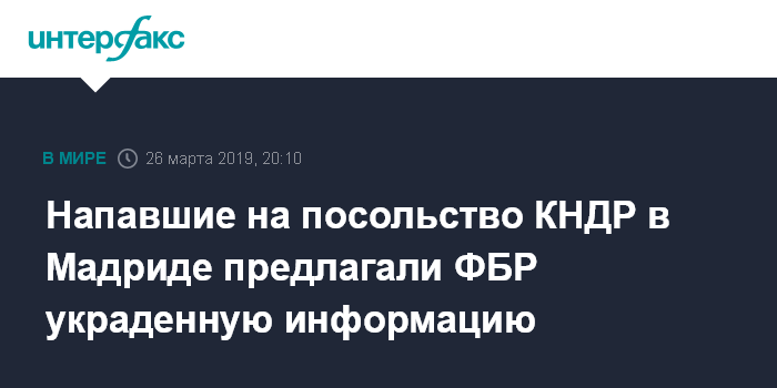 Москва. 26 марта. INTERFAX.RU - В Национальном суде Испании во вторник сообщили, что участники февральского нападения на посольство КНДР в Мадриде предлагали ФБР украденные данные.