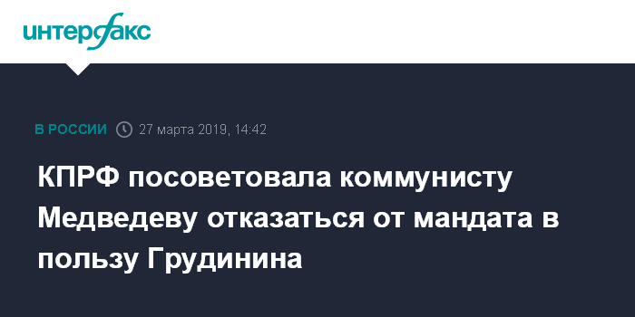 КПРФ посоветовала коммунисту Медведеву отказаться от мандата в пользу Грудинина