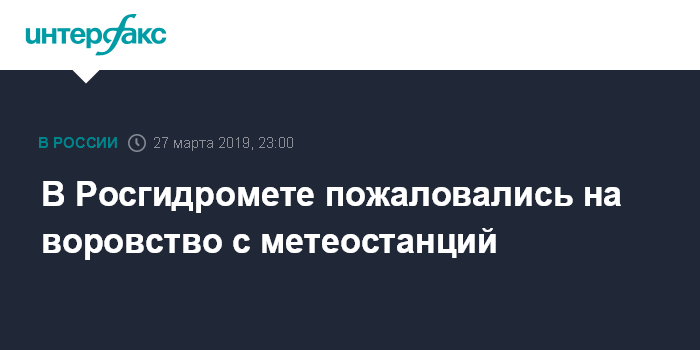 Москва. 27 марта. INTERFAX.RU - Руководитель Росгидромета Максим Яковенко заявил о большом ущербе, который наносит в российских регионах расхищение имущества метеостанций.