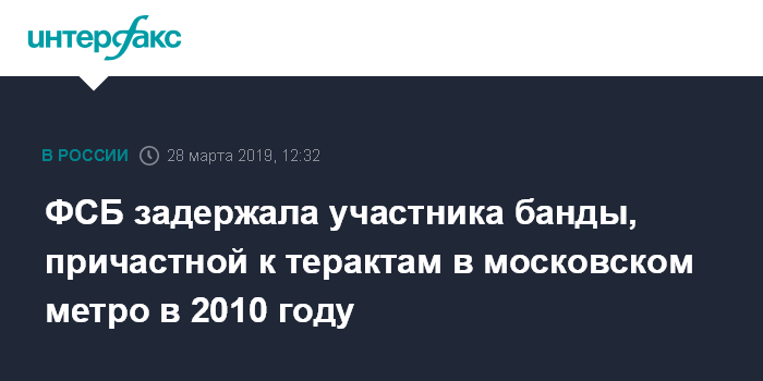 ФСБ задержала участника банды, причастной к терактам в московском метро в 2010 году