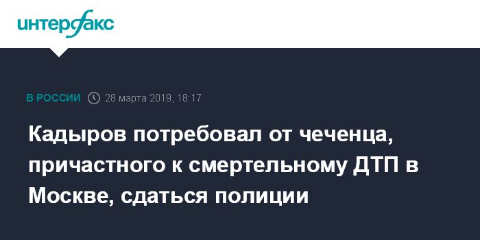 Москва. 28 марта. INTERFAX.RU - Глава Чечни Рамзан Кадыров призвал чеченца, предполагаемого виновника аварии на Можайском шоссе в Москве, в котором погибли женщина и ее дочь, явиться в полицию и ответить за содеянное, а не позорить свой род.