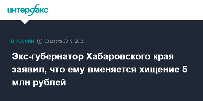 Экс-губернатор Хабаровского края заявил, что ему вменяется хищение 5 млн рублей