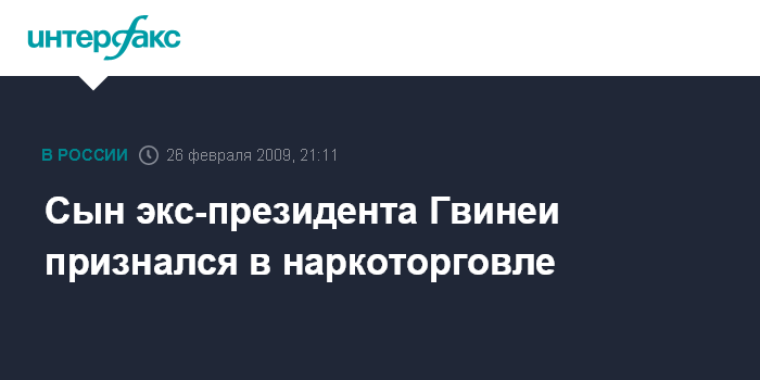 Лондон. 26 февраля. ИНТЕРФАКС - Старший сын бывшего президента Гвинеи Лансаны Конте, Усман Конте в эфире государственного телевидения признался в том, что участвовал в торговле наркотиками, сообщает в четверг британская телерадиокорпорация BBC.