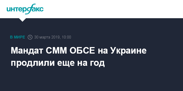 Москва. 30 марта. INTERFAX.RU - Постоянный совет ОБСЕ продлил мандат Специальной мониторинговой миссии на Украине (СММ) еще на один год.