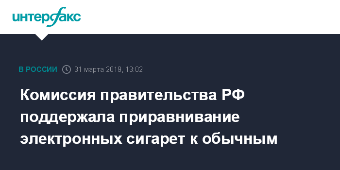 Москва. 31 марта. INTERFAX.RU - Правительственная комиссия по профилактике правонарушений поддержала позицию Минздрава России о едином регулировании электронных и обычных сигарет.