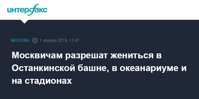 Москвичам разрешат жениться в Останкинской башне, в океанариуме и на стадионах