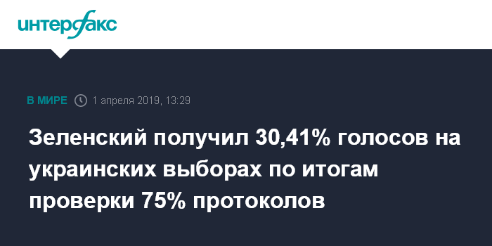 Зеленский получил 30,41% голосов на украинских выборах по итогам проверки 75% протоколов