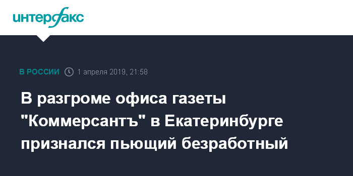 В разгроме офиса газеты "Коммерсантъ" в Екатеринбурге признался пьющий безработный