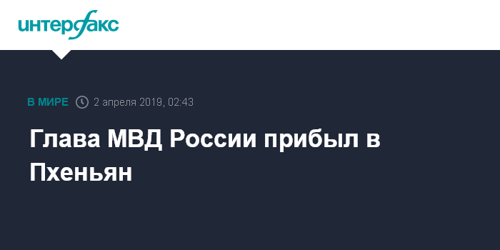 Москва. 2 апреля. INTERFAX.RU - Министр внутренних дел России Владимир Колокольцев прибыл в Северную Корею, сообщает ЦТАК.