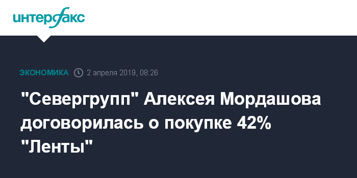 "Севергрупп" Алексея Мордашова договорилась о покупке 42% "Ленты"