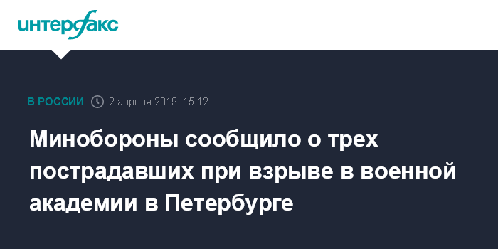 Минобороны сообщило о трех пострадавших при взрыве в военной академии в Петербурге