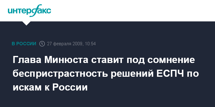 Москва. 27 февраля. INTERFAX.RU - Министр юстиции России Александр Коновалов назвал тенденциозными многие решения Европейского суда по правам человека (ЕСПЧ) по искам граждан к властям РФ. "Решения последних лет Европейского суда по правам человека дают серьезную почву для сомнений в беспристрастности и полной объективности Европейского суда", - заявил он в пятницу на коллегии Минюста.