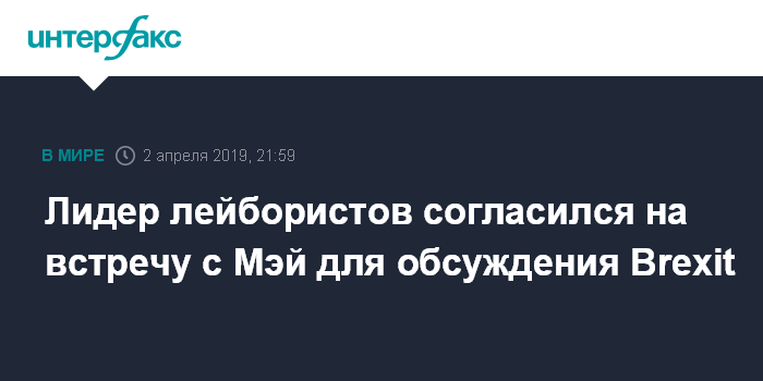 Москва. 2 апреля. INTERFAX.RU - Лидер Лейбористской партии Великобритании Джереми Корбин заявил, что согласен с предложением премьер-министра Терезы Мэй встретиться и обсудить ситуацию с Brexit.