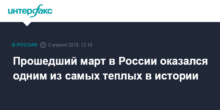 Москва. 3 апреля. INTERFAX.RU - Синоптики отмечают, что март 2019 года в России стал одним из самых теплых первых весенних месяцев в истории.