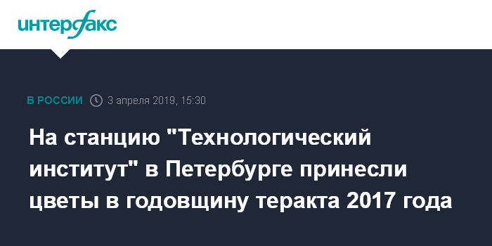 Москва. 3 апреля. INTERFAX.RU - Жители Санкт-Петербурга, представители власти, общественных организаций и культурного сообщества пришли в среду возложить цветы к станции метро "Технологический институт" в память о погибших в теракте 3 апреля 2017 года.