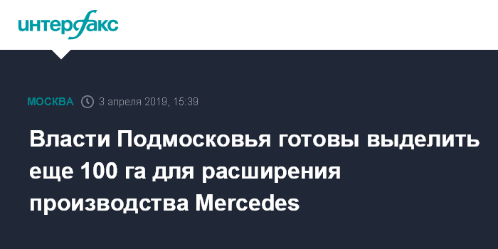 Москва. 3 апреля. INTERFAX.RU - Правительство Московской области рассчитывает на то, что завод Mercedes-Benz в индустриальном парке "Есипово" Солнечногорского городского округа будет расширяться, заявил в среду губернатор региона Андрей Воробьев.