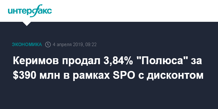 Керимов продал 3,84% "Полюса" за $390 млн в рамках SPO с дисконтом