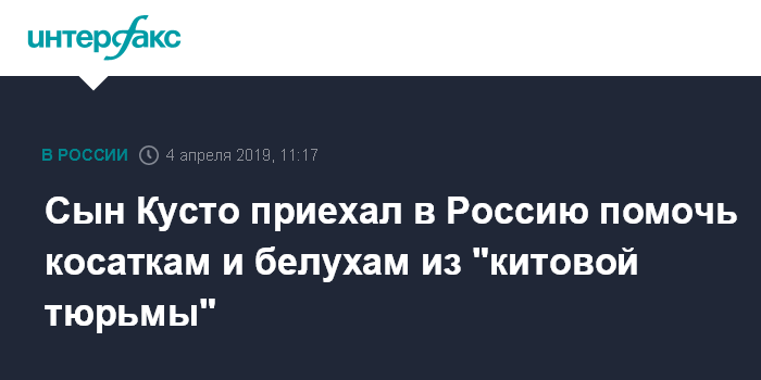 "Для нас быть приглашенными правительством России и официальными лицами, чтобы заниматься спасением и реабилитацией белух и косаток, это замечательно, мы уже много лет занимаемся этой проблемой. Здесь мы всего на три-четыре дня для того, чтобы разобраться в ситуации, учиться у наших коллег и понять, как мы можем лучше всего помочь", - сообщил Кусто телеканалу.