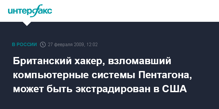 Британский хакер, взломавший компьютерные системы Пентагона, может быть экстрадирован в США