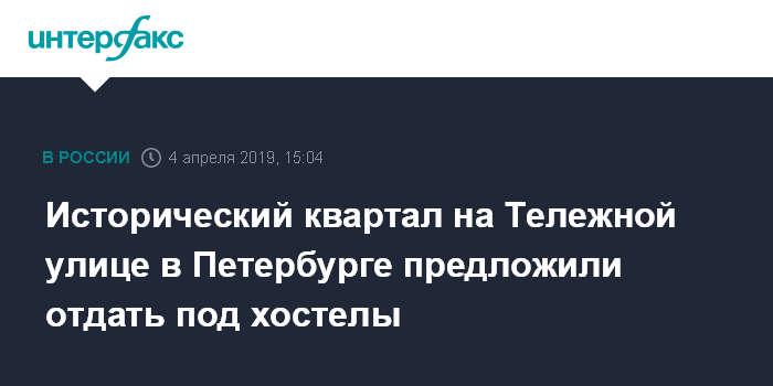 Москва. 4 апреля. INTERFAX.RU - Депутат Законодательного собрания Петербурга Оксана Дмитриева в четверг предложила реконструировать исторический комплекс на Тележной улице и отдать его под хостелы.