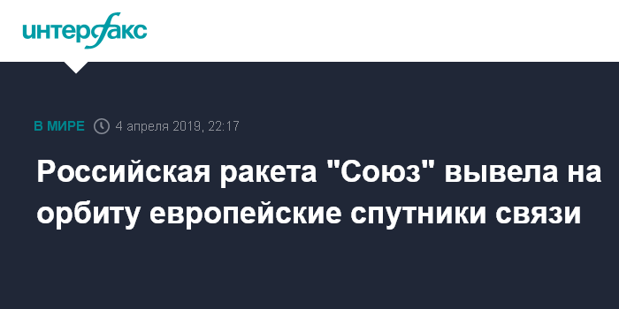 Российская ракета "Союз" вывела на орбиту европейские спутники связи