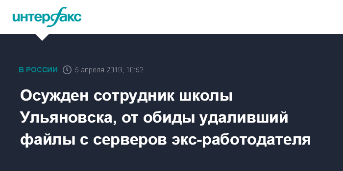 Осужден сотрудник школы Ульяновска, от обиды удаливший файлы с серверов экс-работодателя