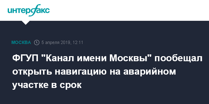 Ранее в пятницу газета "Коммерсантъ" сообщила, что участок канала имени Москвы, осушенный после подтопления Тушинского тоннеля в январе, могут не успеть открыть к началу речной навигации 24 апреля. Руководитель ФГБУ "Канал им. Москвы" Герман Елянюшкин рассказал изданию, что срок завершения восстановительных работ смещен ближе к 1 июня из-за многочисленных провалов, обнаруженных при осмотре места происшествия.