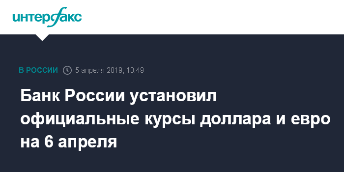 Банк России установил официальные курсы доллара и евро на 6 апреля