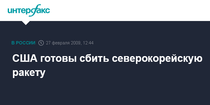 Москва. 27 февраля. INTERFAX.RU - Вооруженные силы США полностью готовы к тому, чтобы сбить баллистическую ракету, к запуску которой готовятся сейчас в КНДР.