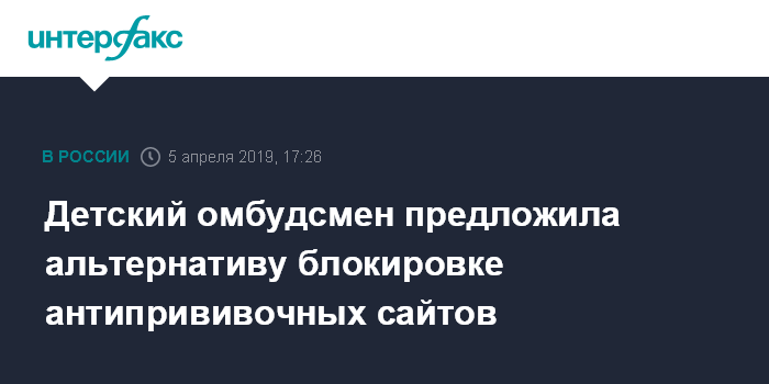 Москва. 5 апреля. INTERFAX.RU - Уполномоченный по правам ребенка в России Анна Кузнецова предложила маркировать качественные ресурсы с медицинской информацией, а не блокировать антипрививочные сайты.