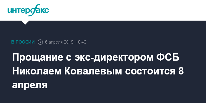 Прощание с экс-директором ФСБ Николаем Ковалевым состоится 8 апреля