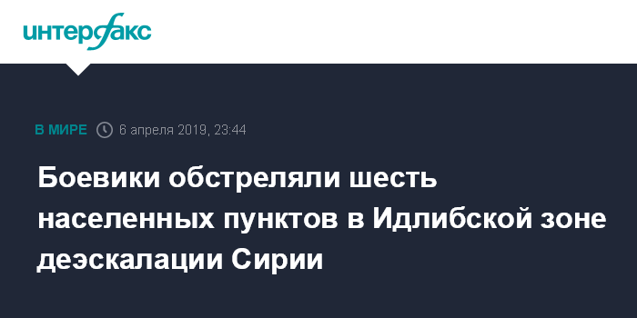 Москва. 6 апреля. INTERFAX.RU - В Идлибской зоне деэскалации продолжаются нарушения режима прекращения боевых действий со стороны незаконных вооруженных формирований, сообщил на брифинге руководитель российского Центра по примирению враждующих сторон в Сирии Виктор Купчишин.