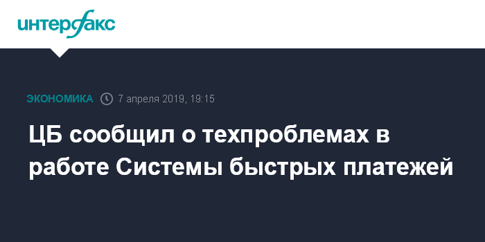 Москва. 7 апреля. INTERFAX.RU - В работе системы быстрых платежей с 6:40 воскресенья наблюдаются технические проблемы при проведении отдельных операций, говорится в пресс-релизе ЦБ РФ.
