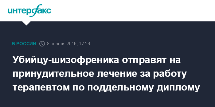 Убийцу-шизофреника отправят на принудительное лечение за работу терапевтом по поддельному диплому