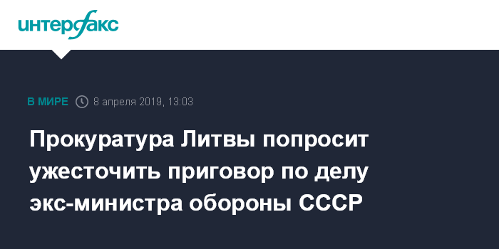 Прокуратура Литвы попросит ужесточить приговор по делу экс-министра обороны СССР
