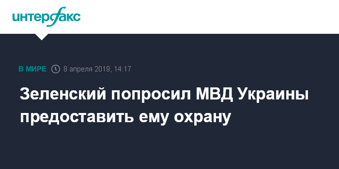 Москва. 8 апреля. INTERFAX.RU - Штаб Владимира Зеленского попросил МВД предоставить кандидату в президенты Украины охрану, сообщил в понедельник советник главы министерства Иван Варченко.