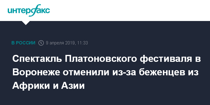 Спектакль Платоновского фестиваля в Воронеже отменили из-за беженцев из Африки и Азии