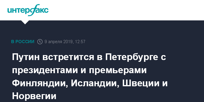 Путин встретится в Петербурге с президентами и премьерами Финляндии, Исландии, Швеции и Норвегии