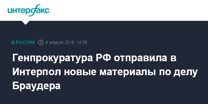 Москва. 9 апреля. INTERFAX.RU - Российская сторона направила в Интерпол дополнительные материалы, в том числе по новому уголовному делу в отношении финансиста Уильяма Браудера, сообщил "Интерфаксу" официальный представитель надзорного ведомства Александр Куренной.