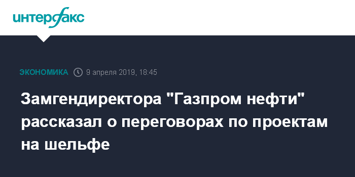 Москва. 9 апреля. INTERFAX.RU - "Газпром нефть" ведет переговоры о сотрудничестве на шельфе и с российскими, и зарубежными партнерами, сообщил "Интерфаксу" в кулуарах Арктического форума-2019 заместитель генерального директора по развитию шельфовых проектов "Газпром нефти" Андрей Патрушев.