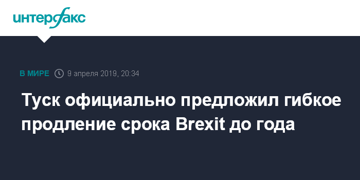 Москва. 9 апреля. INTERFAX.RU - Председатель Европейского совета Дональд Туск в письме-приглашении на внеочередной саммит ЕС 10 апреля главам государств и правительств стран Евросоюза официально опубликовал озвученное ранее источниками СМИ предложение о гибком продлении срока Brexit.
