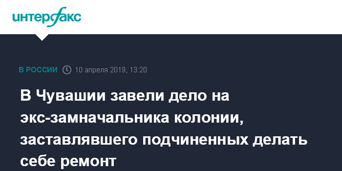 Москва. 10 апреля. INTERFAX.RU - В Чебоксарах завели уголовное дело на бывшего замначальника исправительной колонии, который заставлял подчиненных ремонтировать свою квартиру и строить дачу, сообщает в среду управление СК по Чувашии.
