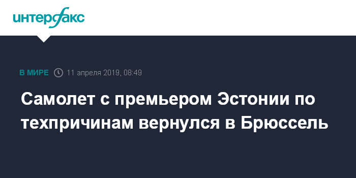 Москва. 11 апреля. INTERFAX.RU - Премьер-министр Эстонии Юри Ратас и сопровождающая его делегация не смогли долететь до Таллина, возвращаясь в среду из Брюсселя со внеочередной встречи глав государств и правительств стран Европейского союза.