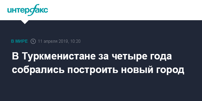 Москва. 11 апреля. INTERFAX.RU - Президент Туркменистана Гурбангулы Бердымухамедов заложил первый камень нового города, который должен стать административным центром Ахалского велаята (области), сообщил в четверг телеканал "Туркменистан".